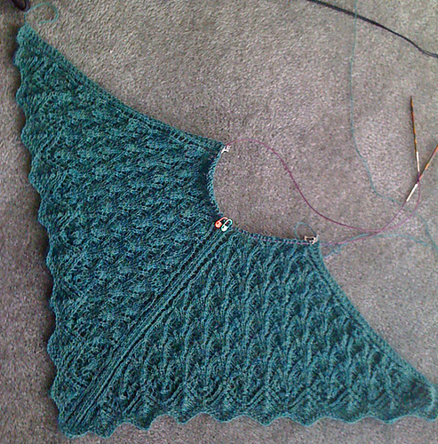 10. I think this is the first finished one of these I’ve seen, and I love it. Gorgeous yarn, to begin with (although I’m sorry its beauty didn’t also magically make it easy to work with…), and I love the pattern. It looks like it’s draping beautifully, too.